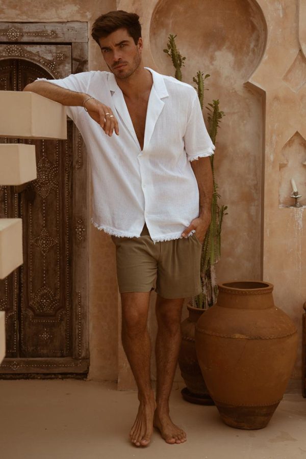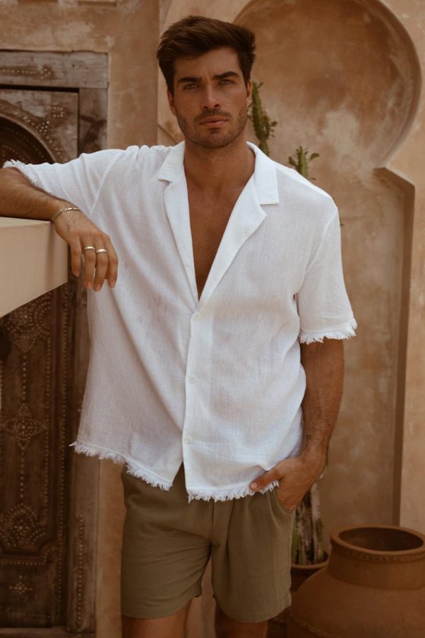 – Short sleeves and button closure