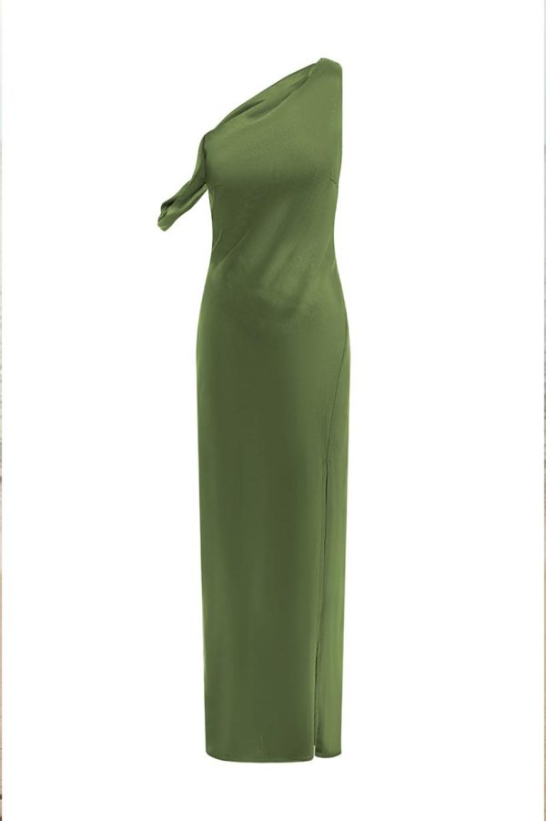 Our Gia Maxi dress features a beautifully draped asymmetrical neckline and side split for an effortless ethereal look.