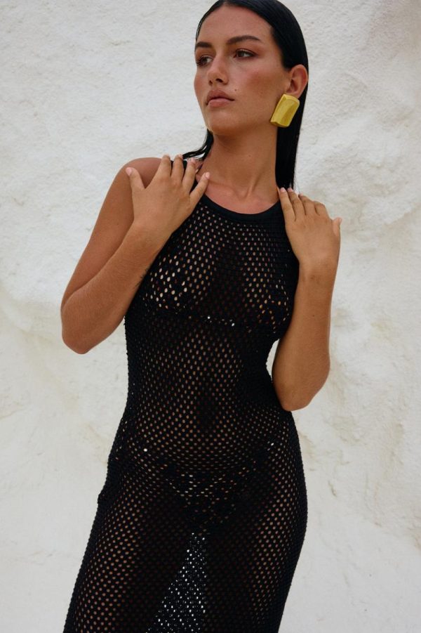 Our Shamine Midi Dress is crafted from a fine crochet knit with side splits, the perfect piece to take you from beach to bar.